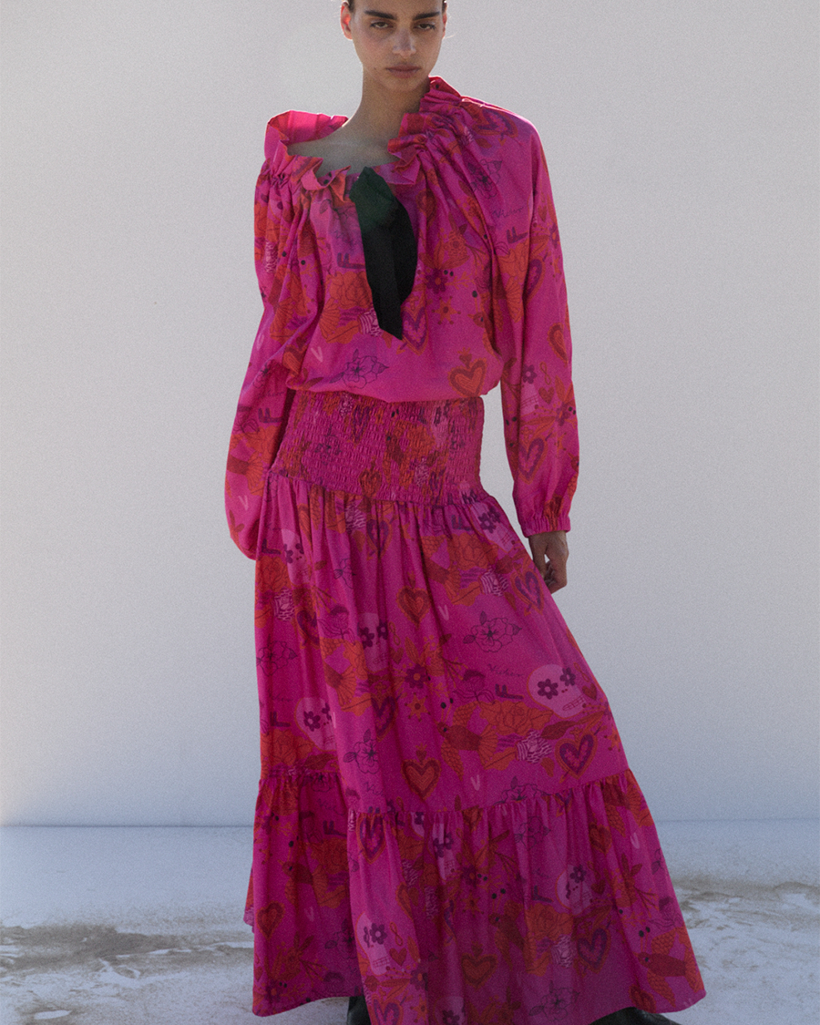Wykonana z bawełny ozdobionej autorskim printem VICHER bluzka wzbogacona o hiszpański dekolt, który możesz nosić w zależności od potrzeby - sensualnie ukazując ramiona lub bardziej się zakrywając. Doskonale łączy się ze spódnicą LA VIDA.