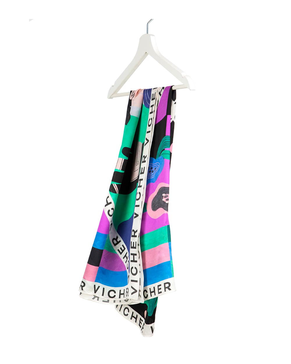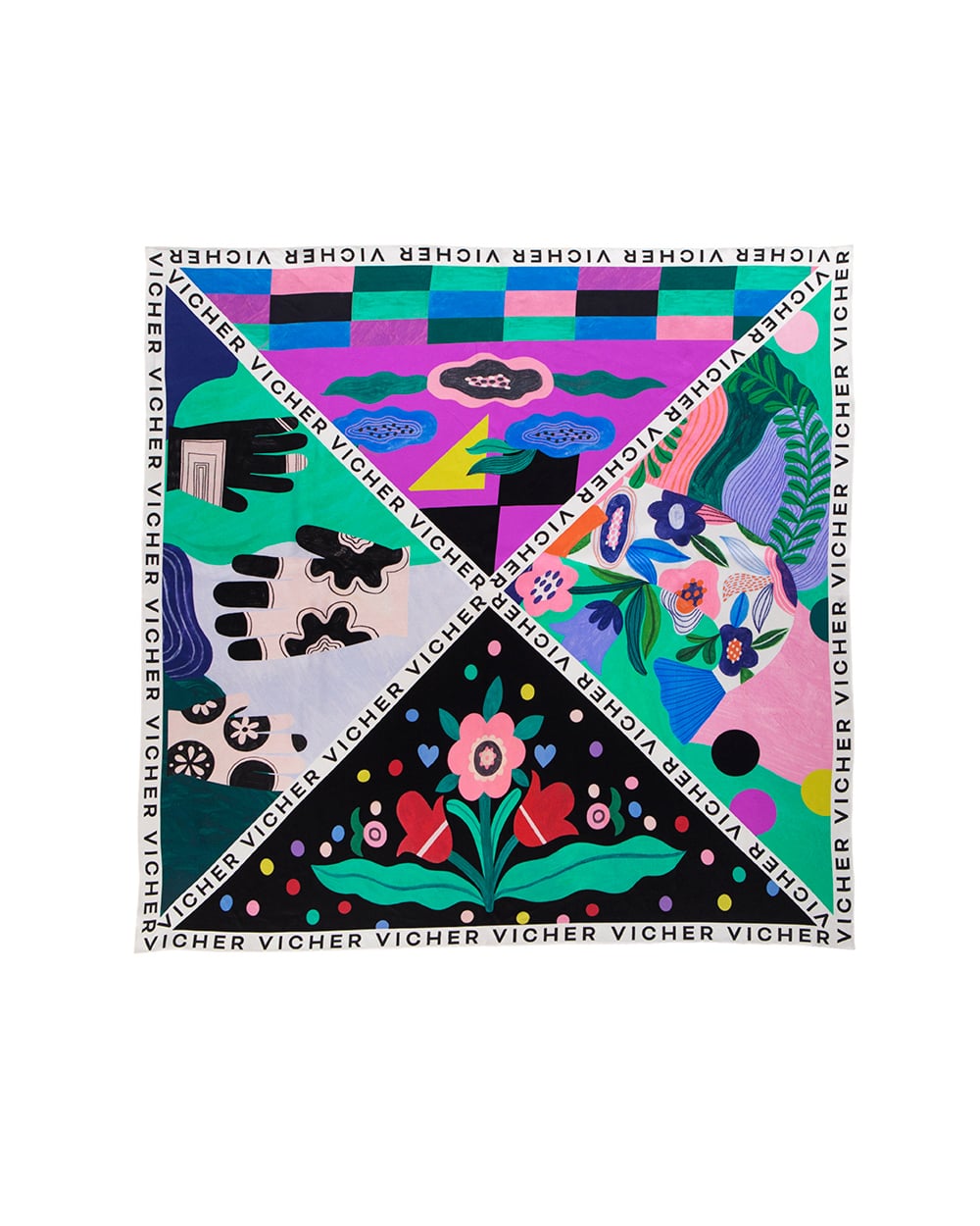 Jedwabna duża chusta o wymiarach 110x110 cm, którą zdobi autorski print VICHER będący naszą trawestacją sztuki Stryjeńskiej. Obłędna w kolorach. Noś wiążąc nonszalancko na głowie, szyi lub jako przewiązaną w pasie niczym pasek, bądź swobodnie narzuconą na płaszcz czy garnitur. Co na to Zocha? Pokochałaby.