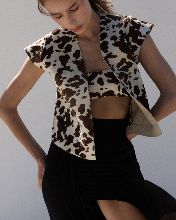 Stwórz ciekawą mieszankę iberyjskich kultur ze zjawiskową kamizelką z najwyższej jakości skóry ozdobionej pięknym motywem zwierzęcym. Prosta minimalistyczna forma zestawiona z wyrazistym wzorem sprawiły, że kamizelka ta jest zarówno uniwersalna jak i zachwycająca. Narzuć na biała sukienkę MEMMORIA lub połącz ze spodniami DIEGO. Obłędna!