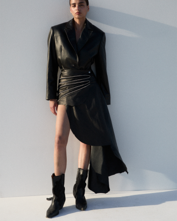 Wspaniały skórzany żakiet o kroju oversize wykonany z najwyższej jakości skóry licowej w kolorze głębokiej czerni. Jego ponadczasowa forma sprawia, że idealnie sprawdzi się zarówno w casualowych, jak i eleganckich stylizacjach. W komplecie ze spódnicą ASYMMETRY wygląda obłędnie!