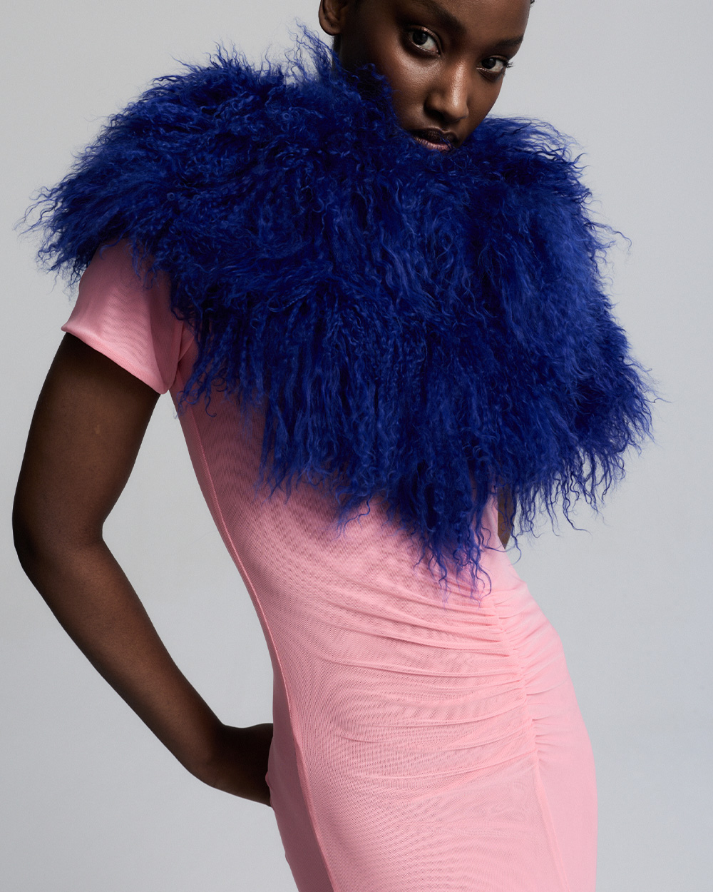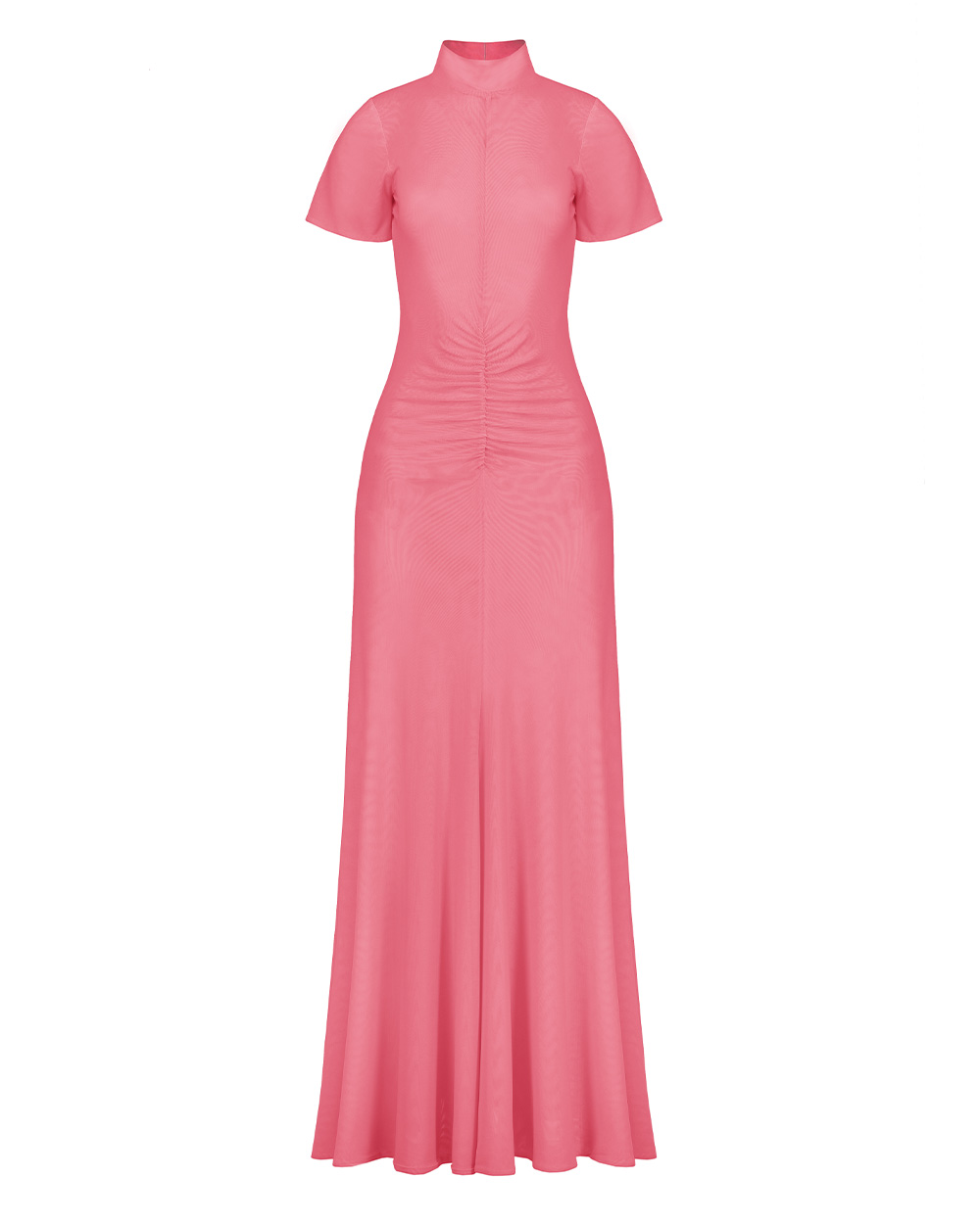Zapowiedź nadchodzącej wiosny. Wspaniała, delikatna, ale również zmysłowa sukienka z elastycznej siateczki w kolorze różowym. Misterne marszczenia pięknie podkreślają talię. Nie da się w niej nie zakochać.