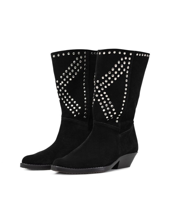 Topowe buty VICHER w nowym wydaniu! Kowbojki wykonane są z miękkiego i komfortowego zamszu wzbogaconego o metalowe zdobienia, a także - w porównaniu z kowbojkami VICHER – mają nieco skróconą cholewkę. Jesienno-zimowy MUST HAVE!